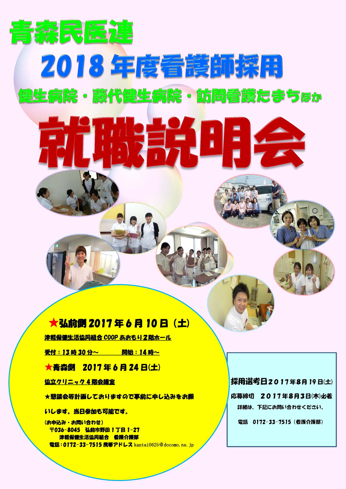 | 【連絡先】 | 津軽保健生活協同組合/組織部 電話:0172-35-8933 ※2017年7月10日までにご連絡ください。 |